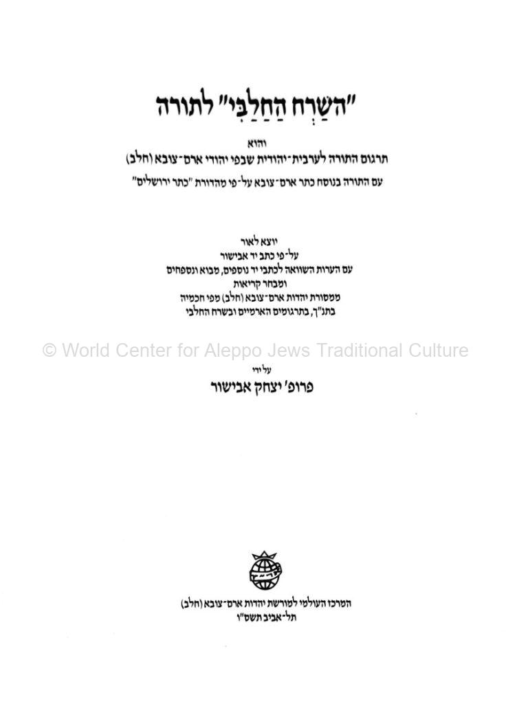 לפי מנהג יהדות ארם צובא (חלב) בנוסח המקורי והמקראי