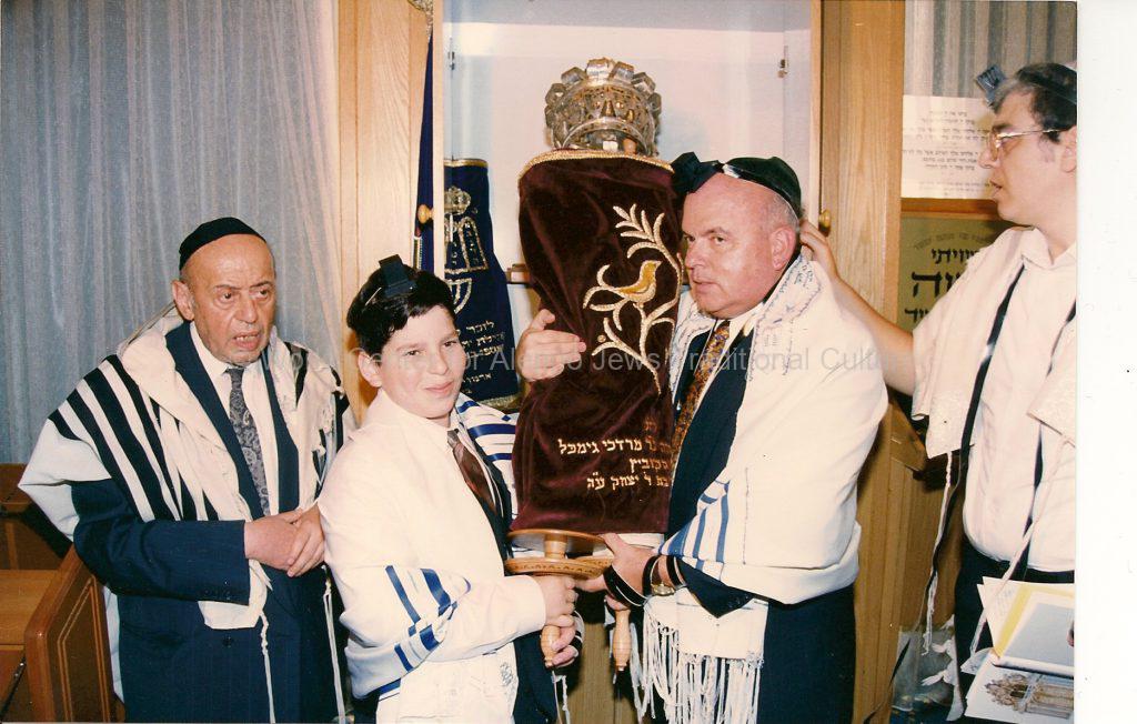 - חכם-אדמון-כהן-בעת-הכנסת-ספרי-תורה-חלבים-בבית-כנסת-בישראל