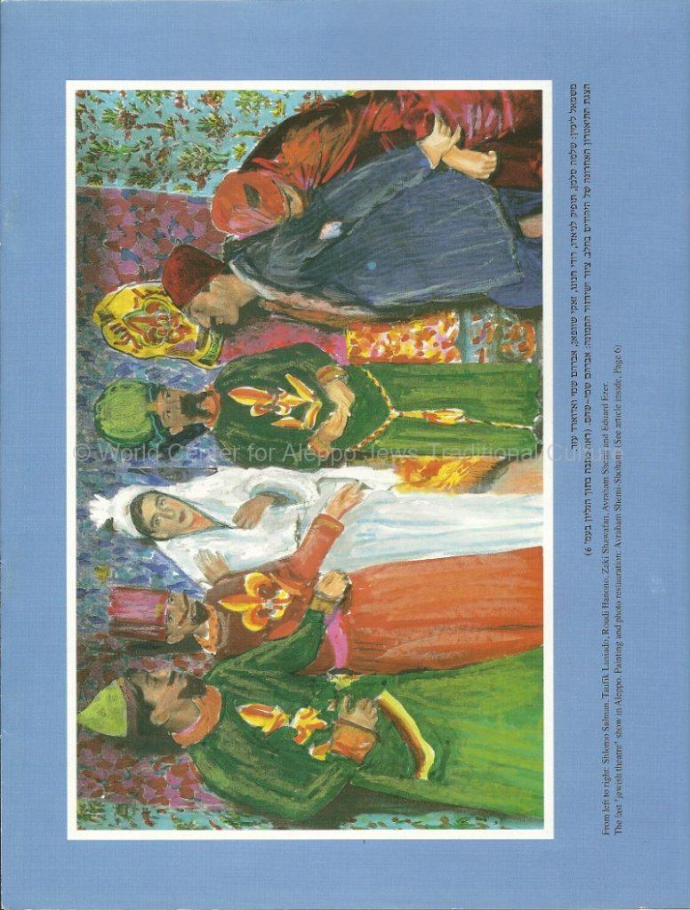 הצגת התיאטרון האחרונה של היהודים בחלב. ציור ושיחזור התמונה: אברהם שמי-שהם. (ראה כתבה בתוך הגליון בעמוד 6)