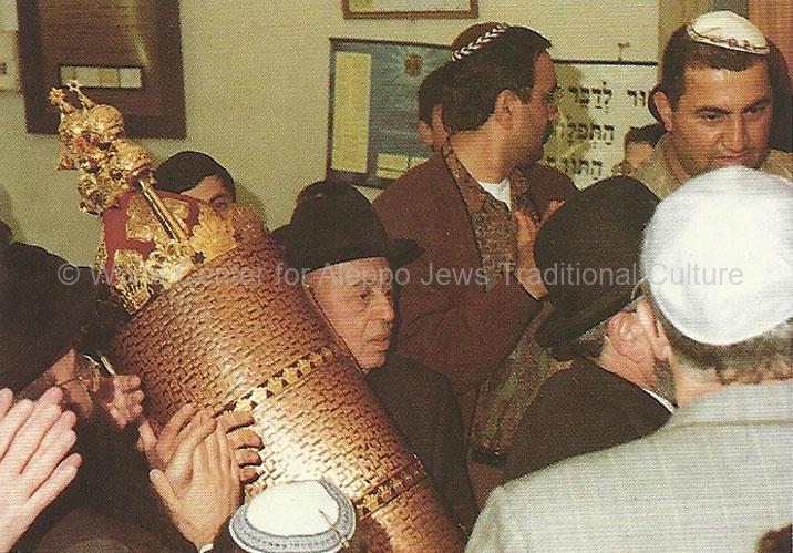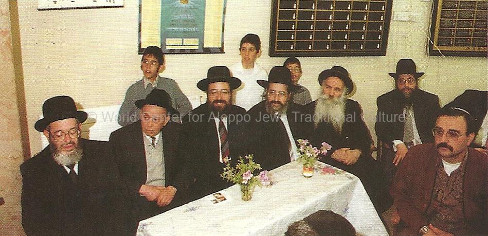 - כ״א באייר התשנ״ד, רמות א׳, ירושלים -בית הכנסת "נצח ישראל״ – ערב הכנסת ספר תורה מחלב לבית הכנסת. משמאל לימין: הרב יצחק זעפראני, חכם אדמון כהן, הרב נסים עטייה, הרב שלמה זעפראני, הרב המבורגר והרב משה זעפראני. בפינה מימין בקדמת התמונה: ראובן שמעון, עולה חדש מחלב, אשר הביא את ספר התורה ארצה.